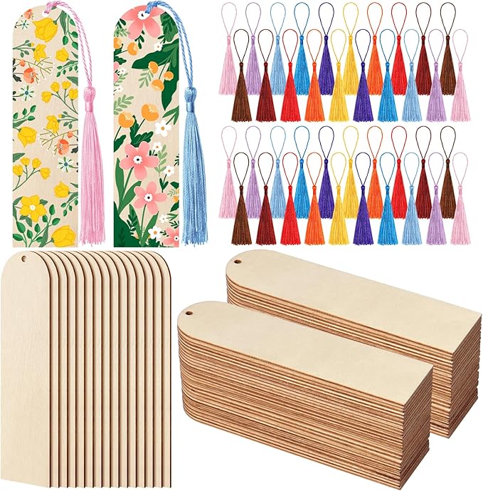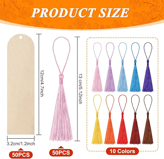 - Unfinished bookmark set: you will be provided 50 unfinished wooden blank bookmarks, 50 colorful tassels in a variety of 10 different colors,which are nice combination for you to make pretty hanging ornaments, and meet your various DIY making needs