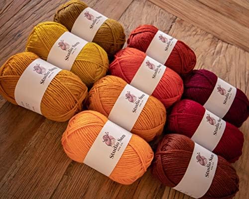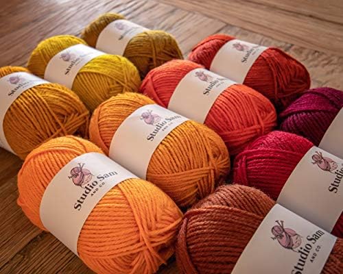 Unleash your creativity with the Studio Sam Acrylic Yarn Set, featuring ten large 50g skeins in a stunning blend of orange and brown hues, inspired by the warm tones of autumn. With a total of 1030 yards of high-quality acrylic yarn, this set is perfect for all your knitting, crochet, and craft projects.